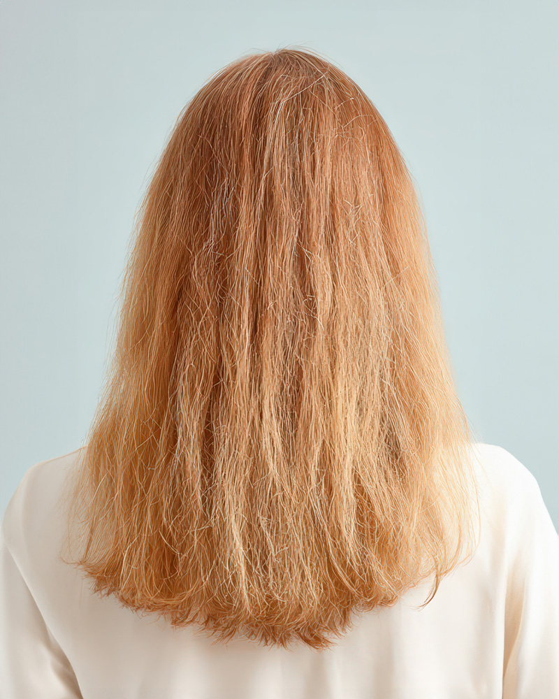Högporöst hår har ett fjällskikt som är öppet eller skadat – ofta som följd av blekning, värmestyling eller kemiska behandlingar.
