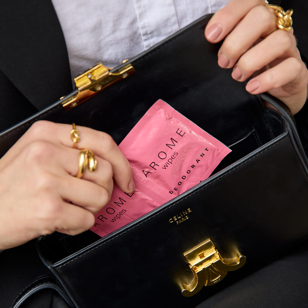 AROME wıpes är perfekt för att fräscha upp armhålorna när du är på språng.