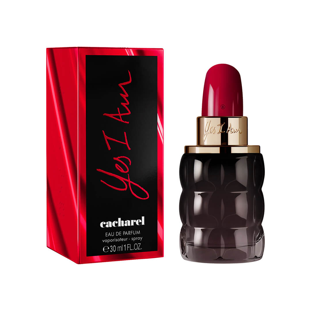 Yes I Am eau de parfum är den starka och djärva kvinnans doftsignatur, en kvinna som är både sensuell och självständig. Yes I Am är en hyllning till kvinnan som skriver sin egen historia. Yes I Am: en flaska i form av ett läppstift, den ultimata symbolen för kvinnlighet. En röd läppstiftskula med smakfull gravyr och rökfärgat svart quiltat glas ... så chict och glamoröst det kan bli. Den mystiska och feminina flaskan avslöjar en sensuell rosa doft. Yes I Am-doften, den första "Spicy Cremoso"-doften från Cacharel.