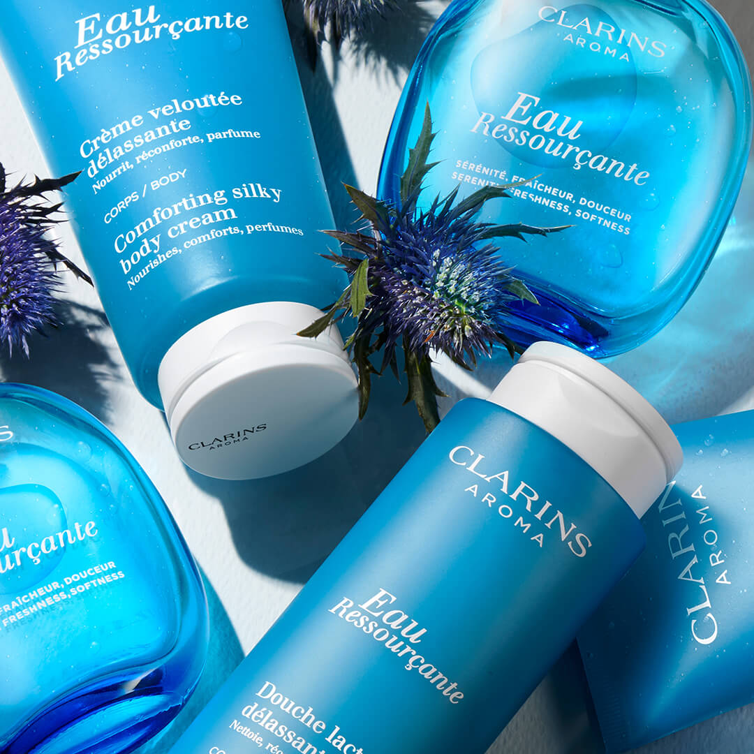 Clarins Eau Ressourçante Body Cream är en kroppskräm med Clarins ikoniska, eteriska Eau Ressourçante-oljor som ger en doft av välbefinnande, avkoppling och lugn. Den lätta och krämiga formulan är berikad med ekologiskt sheasmör och hasselnötsolja som ger huden intensiv näring och ökad komfort. 93% naturliga ingredienser.
