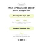 Detta är en fuktkräm med 0,1% ren retinol. Den är anpassad för att passa även känslig hud och förstagångsanvändare av retinol. Den innehåller ren retinol (A-Vitamin) som hjälper till att reducera fina linjer och andra tecken på för tidigt åldrande hud. Innehåller även Panthenol som verkar återfuktande och skyddande & adenosin som ökar hudens elasticitet. Tokotrienol (E-vitamin) minskar också synliga tecken på för tidigt åldrande hud. Denna kräm behandlar acne, orenheter samt jobbar för en jämnare och förbättrad hudstruktur. Resultatet är en slätare hud med naturlig lyster.