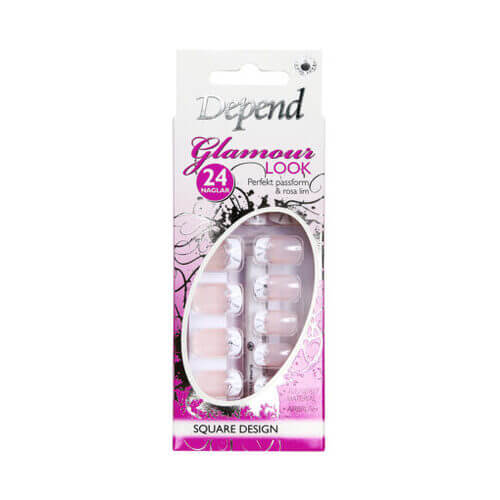Glamour Look lösnaglar, Square design, Silver ribbon. Perfekt passform, enkla att applicera och med ett naturligt och vackert utseende. Varje lösnagel är numrerad så att du enkelt vet vilken lösnagel som passar till din naturliga nagel.Tid. pris: 81 kr