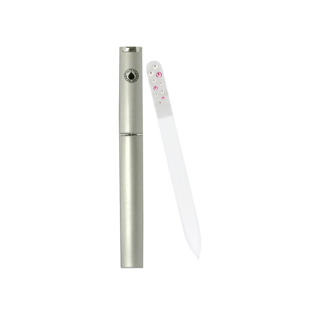 Skaka nagellacksflaskan ordentligt för att blanda färgen väl. Öppna sedan flaskan och dra av överflödigt nagellack från borsten längs kanten på flaskan.