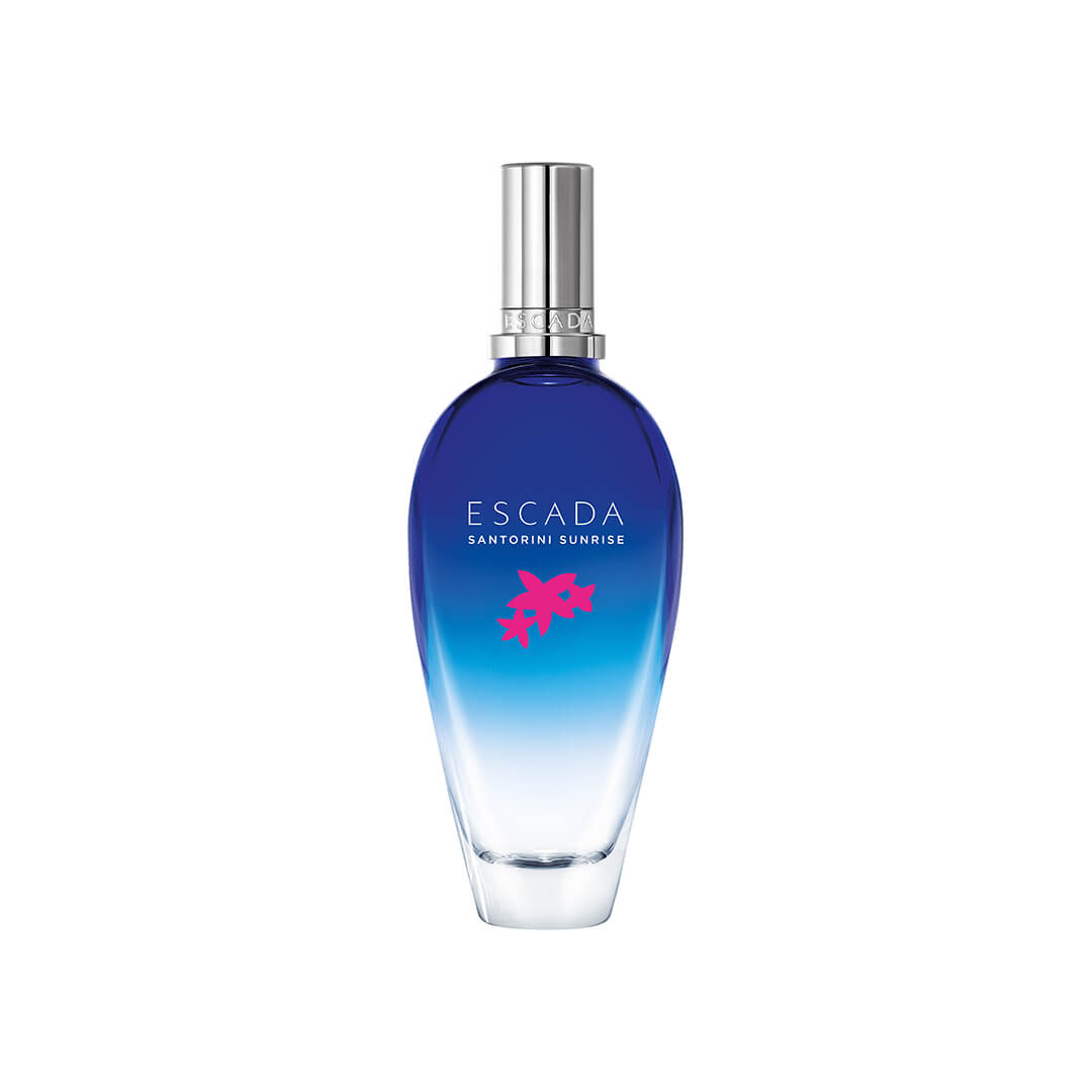 Escada Santorini Sunrise är en direktbiljett till de grekiska öarnas juvel Santorini, där havets djupa vågor och de feminina bougainvillea-blommorna har varit inspiration till den vackra flaskan. Kartonaget är inspirerad av den autentiska grekiska arkitekturen i soluppgången.