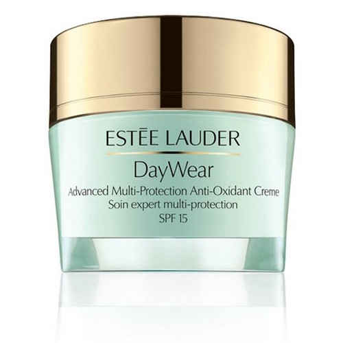 - DayWear innehåller Estée Lauders beprövade Super Anti-Oxidant Complex och brett spektrum SPF. Den reducerar de första ålderstecknen som tråkig hud och fina, torra linjer. Ansiktskrämen är berikad med en beprövad antioxidantkomplex som tillsammans med SPF 15 ger din hud skydd mot solens strålar och dagliga miljöpåverkningar för att förebygga skador och tecken på för tidigt åldrande av huden.