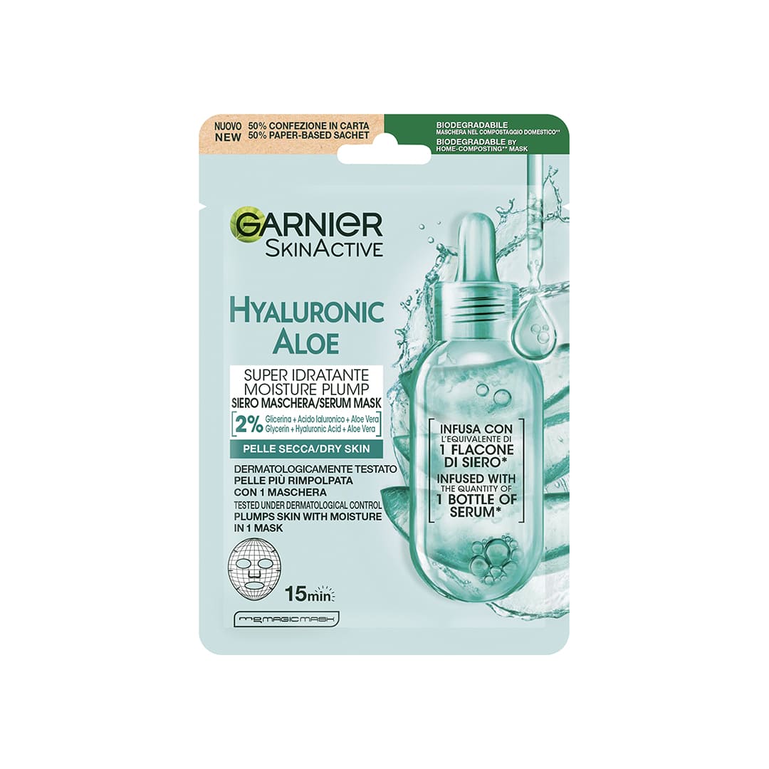 Garnier Moisture Bomb Aloe ansiktsmask är berikad med en mängd formula som motsvarar en 28 ml flaska serum och ger en boost med hyaluronsyra och aloe vera för en fräsch och revitaliserande effekt. Passar till känslig hud.