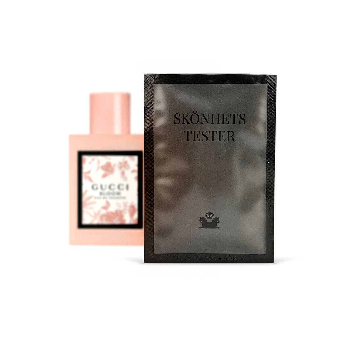 Den karaktäristiska trion av jasmin, tuberos och rangoon creeper får nu en lättare aura med ett sött neroli-ackord. Precis som doftens namn blommar Gucci Bloom-kvinnan på ett naturligt, uttrycksfullt och individuellt vis utan att låta sig begränsas av regler och konventioner. Doften presenteras i en rosa, frostad fyrkantig glasflaska, som symboliserar doftens friskhet och vitalitet.