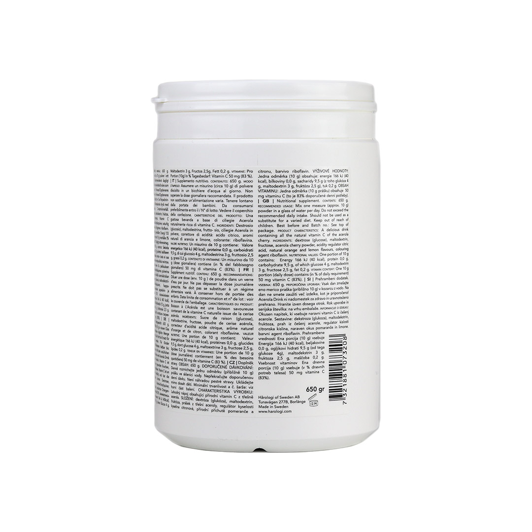 Hårologi ACEROLA DRINK innehåller, förutom C-vitamin och mineraler, lösliga kolhydrater i en blandning (från druv- socker till lösliga dextriner) som är synnerligen nyttig för kroppen. C-vitamin drink är dessutom mineraliserad på ett fysiologiskt korrekt sätt. Den omsorgsfulla blandningen av kolhydrater och salter i ACEROLA DRINKEN gör att den är särskilt värdefull för att upprätthålla rätt vätskebalans vid till exempel idrott och motion. ACEROLA DRINK innehåller inget vanligt socker, sackaros.