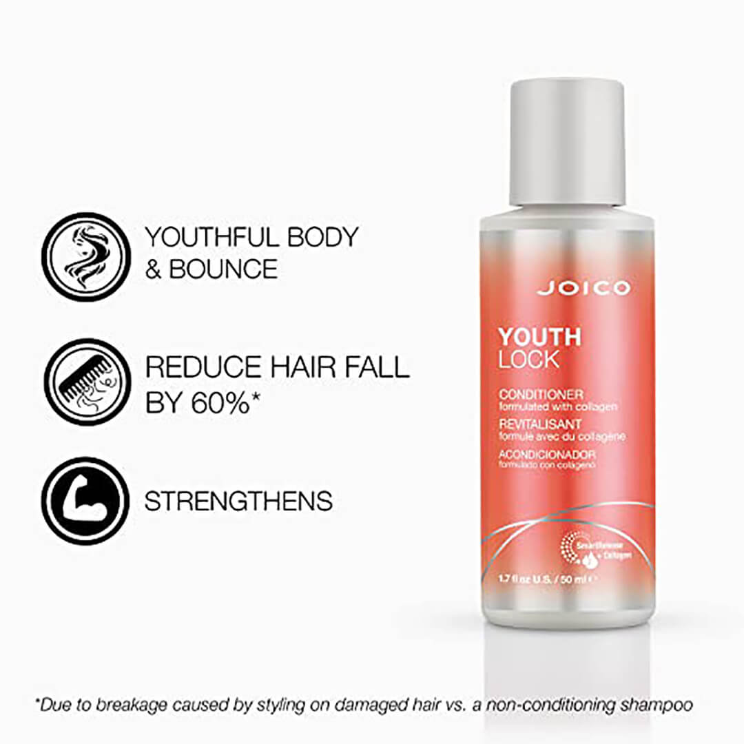 Youthlock Conditioner är den kollagenberikade lösningen för moget hår som är torrt, sprött och som förlorat sin livfullhet. Detta fuktgivande balsam förvandlar hårets fyllighet och stuns samt ger tillbaka dess glans och mjukhet. Samtidigt som hårets ungdomliga livfullhet återupplivas igen.