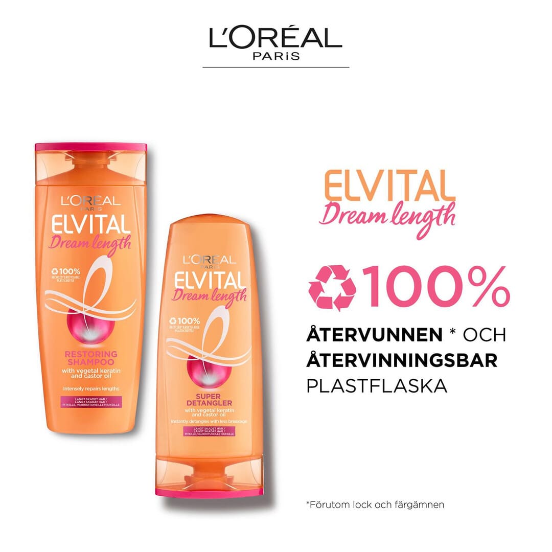 Applicera L'Oréal Paris Dream Lengths Schampoo i fuktigt hår, massera in och skölj ur.