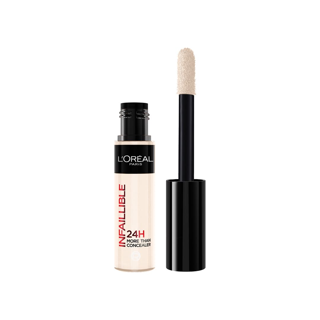 L'Oréal Paris Infaillible More Than a Concealer är en heltäckande concealer som håller i 24 timmar och som känns lätt på huden. Formulan har ett högt pigmentinnehåll för maximal täckningsförmåga och en blandning av oljor för en behaglig applicering. Sitter som den ska hela dagen utan att bli kakig eller fastna i fina linjer. Supersize applikatorn gör den lätt att applicera på specifika eller större hudområden.Tid. pris: 111 kr