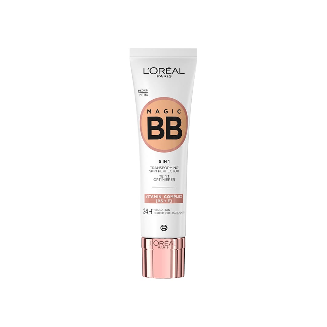 L'Oréal Paris Magic BB Cream ger lätt täckning och ett resultat som ser naturligt ut. Den vårdande formulan fungerar som makeup och hudvård i ett, med en kräm som ändrar färg vid applicering (BB-teknologi). De inkapslade pigmenten anpassar sig efter hudtonen för en perfekt, 'nude' look. L'Oréal Paris Magic BB Cream ger fukt i 24 timmar* och är berikad med E-vitamin + Pro-vitamin B5 som hjälper till att ge huden ett mer hälsosamt utseende på 2 veckor**.