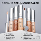 L'Oréal Paris True Match Radiant Serum Concealer har medium-hög täckningsgrad, neutraliserar mörka ringar och minskar synligheten av påsar under ögonen.