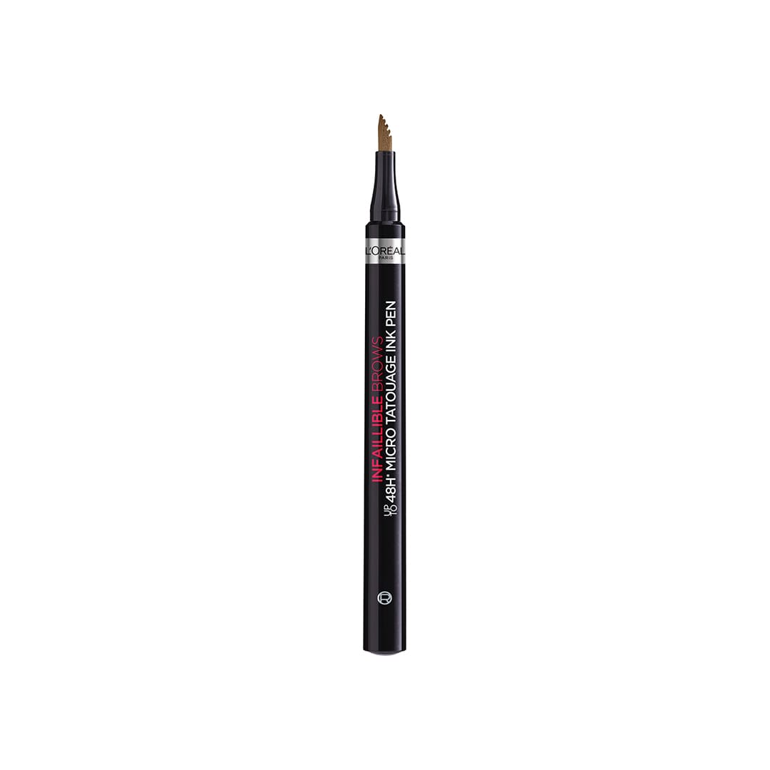 L'Oréal Paris Infaillible Brows 48H Micro Tatouage Ink Pen hjälper dig att fylla ut dina bryn och ge färg för ett resultat som håller i upp till 48 timmar*. Vattenfast formula som inte flagnar eller kladdar. Pennspetsen har tre uddar som gör det enkelt att skapa hårliknande streck. För välvårdade bryn med fin form och färg som håller hela dagen!