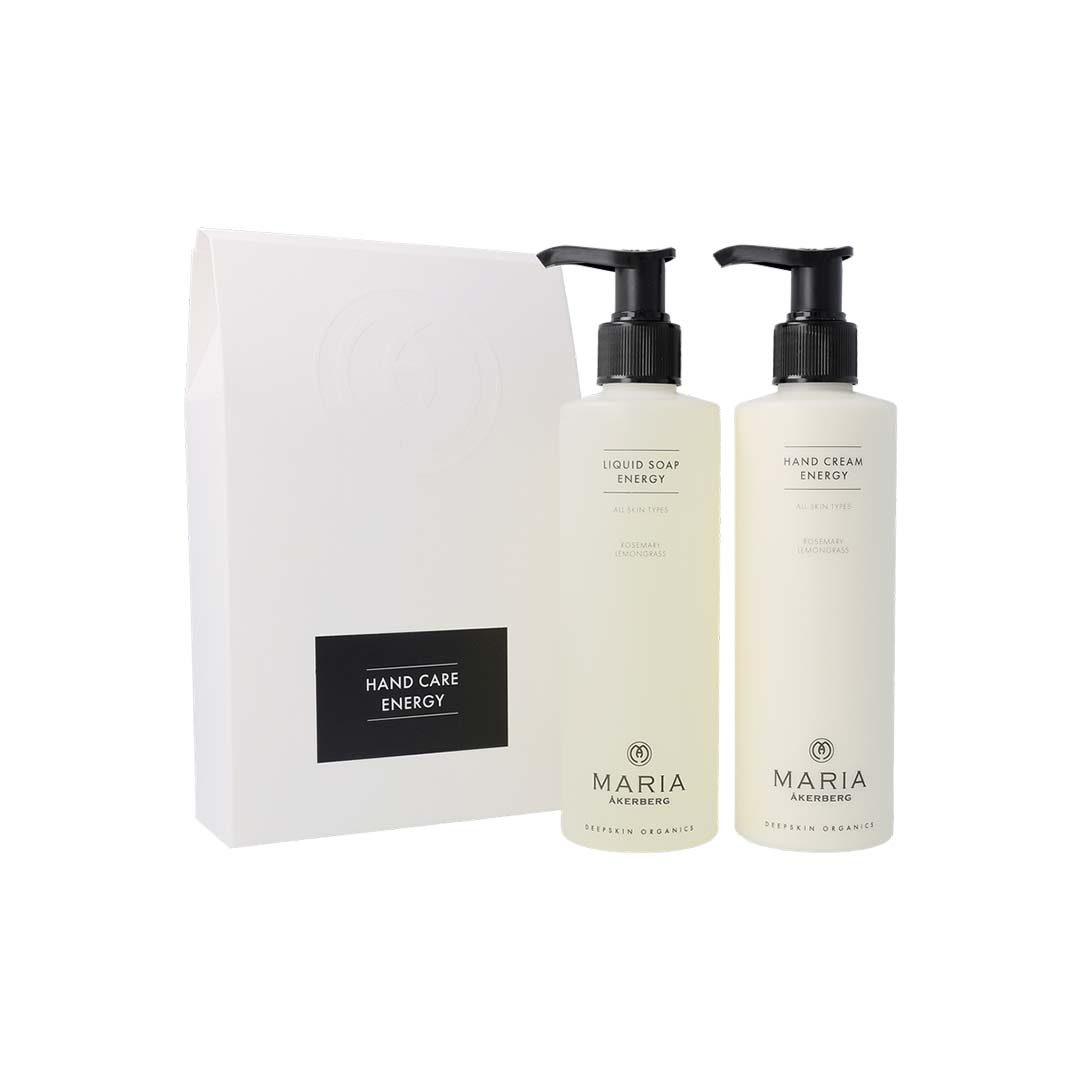 Hand Care Energy innehåller vår storsäljande handtvål Liquid Soap Energy och tillhörande handcreme, Hand Cream Energy. Båda produkter sprider en frisk och uppiggande doft som skapas av eteriska oljor av Citrongräs, Rosmarin, Enbär och Lavendel. De stilrena pumpflaskorna ihop med den upplyftande doften blir en lyxig detalj i badrummet. Produkterna levereras i en presentask. Värde: 378 SEK.
