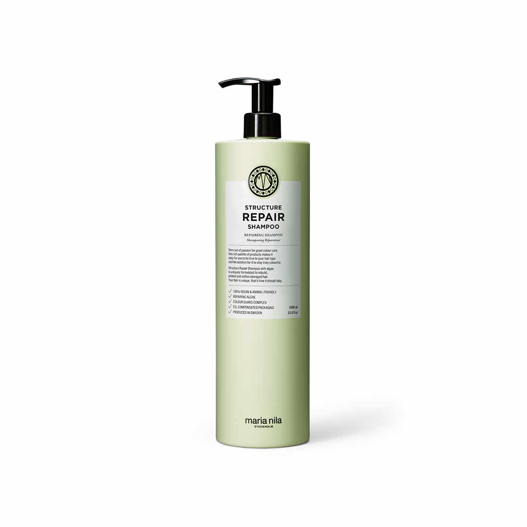 Schampo för skadat och torrt hår som är kemiskt behandlat. Schampot ger fukt och återuppbygger hårets struktur. Lämnar håret med glans, mjukhet och naturlig kvalité. Passar skadat hår. Denna produkt är 100% vegansk. Består bland annat av algextrakt som reparerar håret, ger mjukhet och lyster. Innehåller även UV-skydd. Fri från sulfater och parabener. Producerat i Sverige. Applicera en mängd i blött hår, massera in och skölj sedan noga.