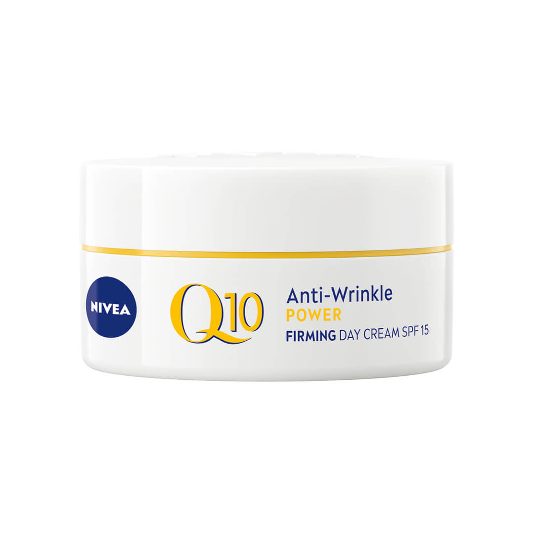 NIVEA Q10 Power Firming Day Cream är en dagkräm berikad med hudidentiskt Q10, Kreatin och SPF 15. Den förbättrade formulan har en dubbelverkande effekt - den skyddar hudens celler mot skador orsakade av fria radikaler och externa faktorer under 24h samt ger cellerna energi för att hjälpa till att neutralisera och reparera cellskador (in-vitro). Denna NIVEA dagkräm är speciellt utvecklad för att reducera rynkor. Passar alla hudtyper. Denna NIVEA ansiktskräm är dermatologiskt testad. Efter 24 timmar känns din hud lenare och mjukare. Efter en vecka blir huden synligt fastare och rynkorna minskas - 1 veckas studie med 47 kvinnor 2020. Efter fyra veckor fortsätter förbättringarna och rynkorna minskas - 4 veckors studie med 47 kvinnor 2020.