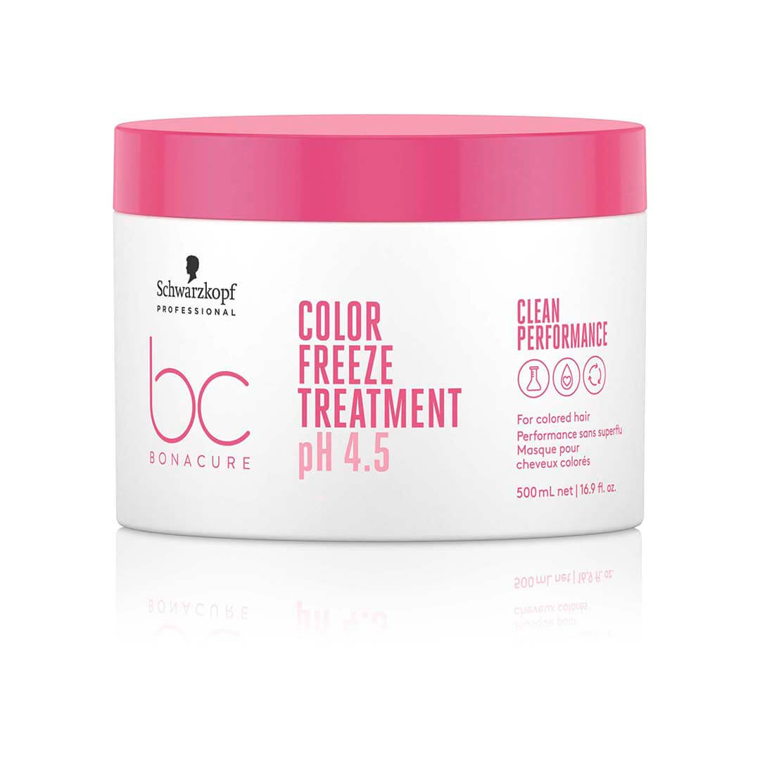 En intensivt återuppbyggande och krämig behandling från Bonacure Color Freeze för färgbehandlat hår. Utan silikoner eller artificiella färgämnen, behandlingen ger djupgående vård. Sammansättningen hjälper till att återställa hårets optimala pH-värde och förhindrar att färgen mattas av.