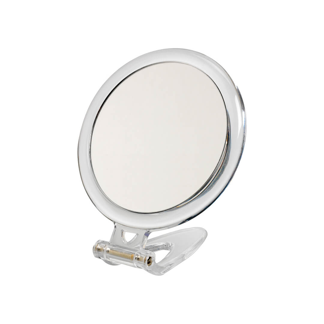 Sminkspegel som du kan ställa eller hålla i handen. En sida är vanlig spegel och den andra sidan förstoring x7.